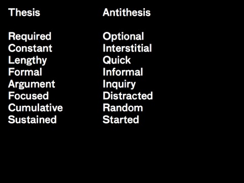 Negation is in all of these — that’s where these disparate approaches to art education find common ground decade after decade. And every one of these ideas has already been applied to the web. When you think about anti-specialization, think about hackers and painters. When you think about anti-autonomy, think about doing things that matter. When you think about anti-hierarchy, think about the value of passion projects, startups, and all the amazingly talented amateurs online.