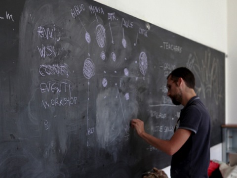 My model in this was Maria Montessori, who described herself as an anti-teacher — more a careful observer or a guide than a professor or instructor. What resulted over the next two days was a wide-ranging discussion about methods and models of education, educational debt, administrative hurdles to interdisciplinarity, and realizing the utopian dream of the open school.