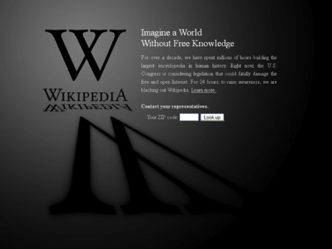 Earlier this year, Wikipedia performed an act of self-removal in the face of concerns that the Stop Online Privacy Act and the Protect IP Act would do serious harm to free speech and free knowledge exchange online. For 24 hours from January 18-19, the site went dark and invited everyone to consider a world without Wikipedia.