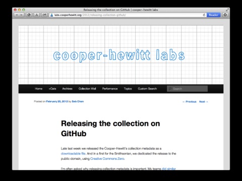 In February, the Cooper-Hewitt National Design Museum took the very exciting step of releasing its collections metadata on GitHub using Creative Commons Zero, the most permissive license available. In doing so, the museum’s Digital & Emerging Media Director Seb Chan hoped that offering this information would make it more discoverable, allowing it to be searched from outside the museum’s own website.